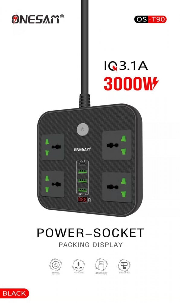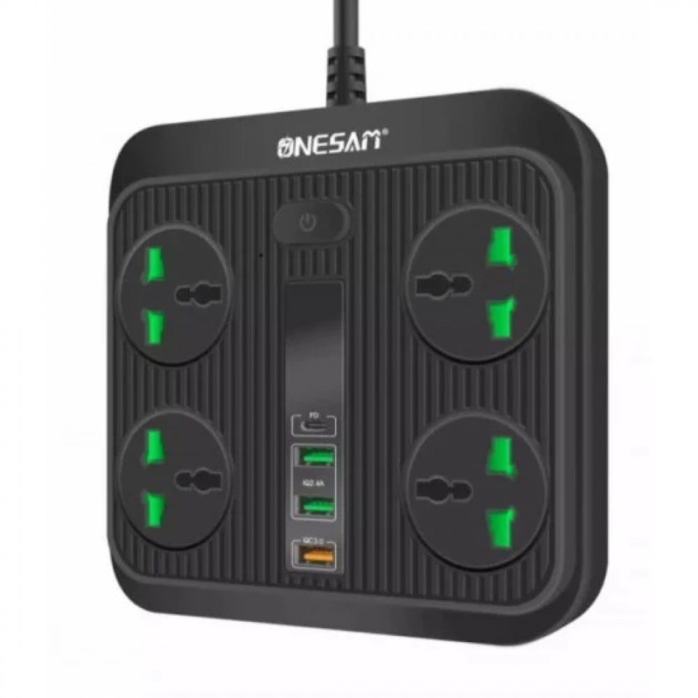 ONESAM - توصيلة كهرباء 4 مخارج 3000واط + 3 USB بقوة 8.4أمبير تدعم الشحن السريع موديل OS-T18 10023484