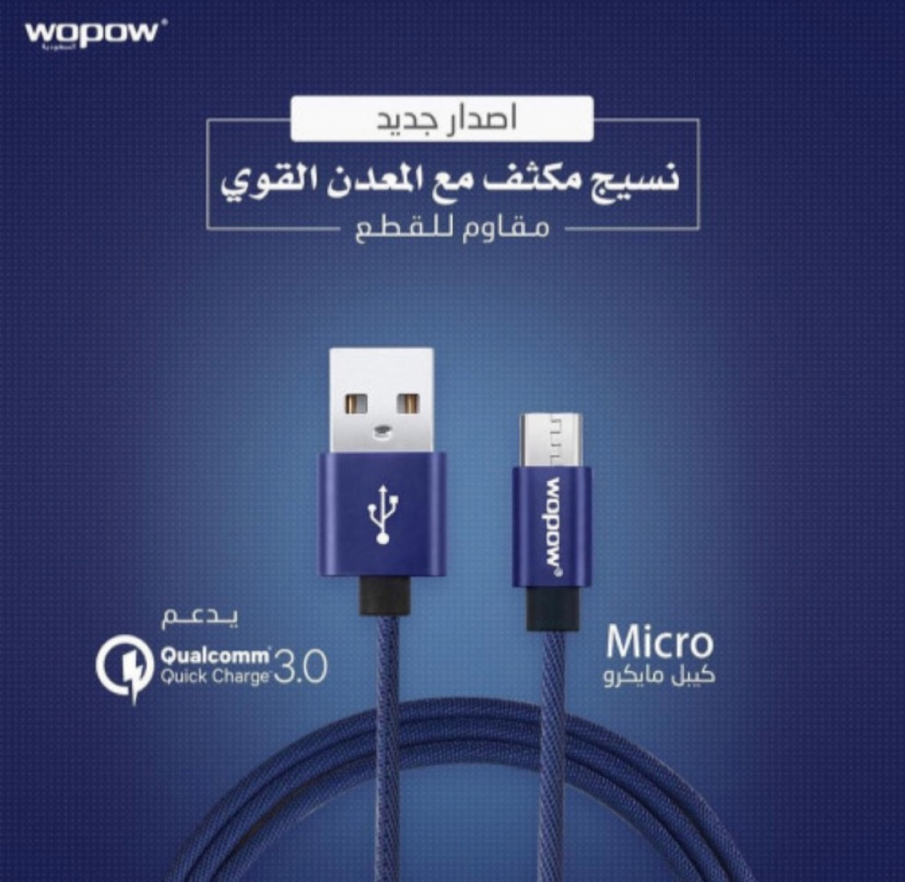 سلك شاحن قماش مقوي مقاوم للقطع من أجود الخامات ماركة wopow